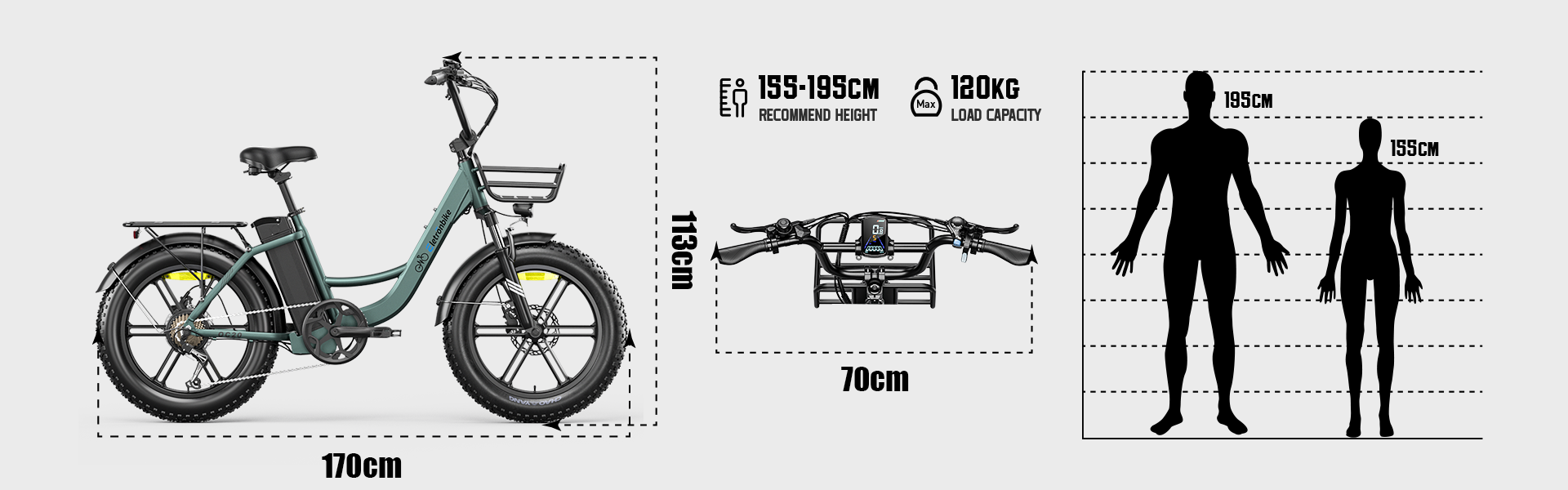 The durable aluminum alloy frame and 20"×4.0" fat tires support riders up to 120 kg, offering a solid and comfortable riding experience on city streets or off-road trails — ideal for heavy riders seeking strength and reliability.