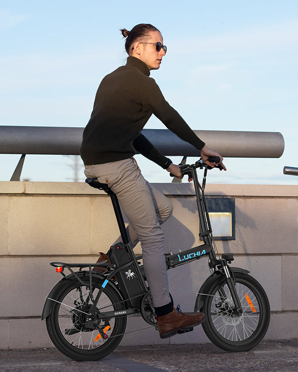 Luchia 080 is a compact folding electric bike made for modern urban explorers. With a 110km range, removable 36V battery, and Shimano 6-speed gears, it brings comfort and efficiency to every ride. Lightweight, portable, and eco-friendly, it’s the perfect e-bike for daily commuting and city adventures.